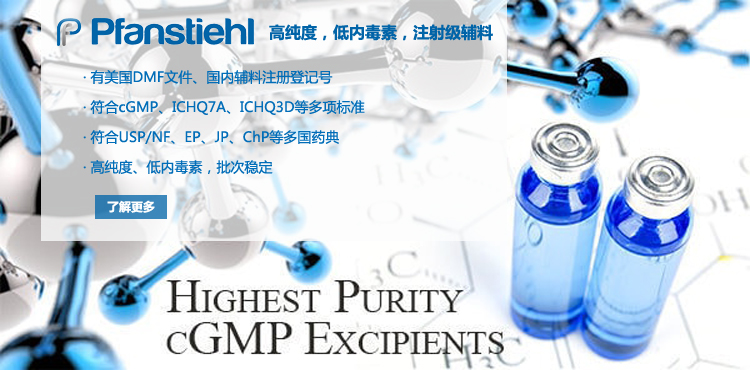 “熱烈祝賀Pfanstiehl的注射級甘氨酸Glycine(G-140)喜獲CDE登記號F20250000403, 這是Pfanstiehl產品獲得的第18個CDE登記號!”甘氨酸在醫藥輔料制劑中應用廣泛,, 可作為緩沖劑,增溶劑,穩定劑等,具有諸多優勢。Pfanstiehl秉承一貫高品質理念,為滿足全球生物制藥行業對于高品質甘氨酸的需求,隆重推出的注射級甘氨酸Glycine (G-140), 具有超高純度,超低內毒素,超低金屬殘留的特點,單獨檢測29種金屬離子,并且新增DNA,RNA,DNA酶,RNA酶和脂肪酶,亞硝酸鹽等多項質量指標的檢測,符合多國藥典規定(USP, EP, BP, JPE, ChP),可用于生物治療性藥物和疫苗的生產。產品信息:· 產品名稱:Glycine, High Purity, Low Endotoxin, Low Metals, USP, EP, BP, JPE, ChP (G-140)· 中文名稱:甘氨酸· 分子式:C2H5NO2· 分子量:75.07 g / mol· CAS號:56-40-6· 產品貨號:G-140產品特點: · 超高純度,超低內毒素,超低微生物含量,超低金屬雜質殘留· 質量指標新增DNA,RNA,DNA酶,RNA酶,脂肪酶和亞硝酸鹽檢測· 符合多國藥典:USP, EP, BP, JPE, ChP· 符合ICH Q3D標準· 符合GMP標準· 已獲DMF和CDE登記號 產品應用:· 緩沖劑· 穩定劑· 增溶劑如果您對Pfanstiehl注射級別Glycine G-140感興趣,歡迎聯系Pfanstiehl 中國區代理商北京西美杰科技有限公司獲得如下詳細的產品概況說明文件和測試樣品。Pfanstiehl Inc.最新產品系列如下,歡迎聯系北京西美杰科技有限公司獲取100g裝免費樣品。北京西美杰科技有限公司為Pfanstiehl中國代理,為客戶提供完善的技術支持與售后服務。歡迎撥打西美杰客服電話400-050-4006或者登陸網站www_xmjsci_com.crbzsj.mobi了解更多信息。 更多>西美杰介紹